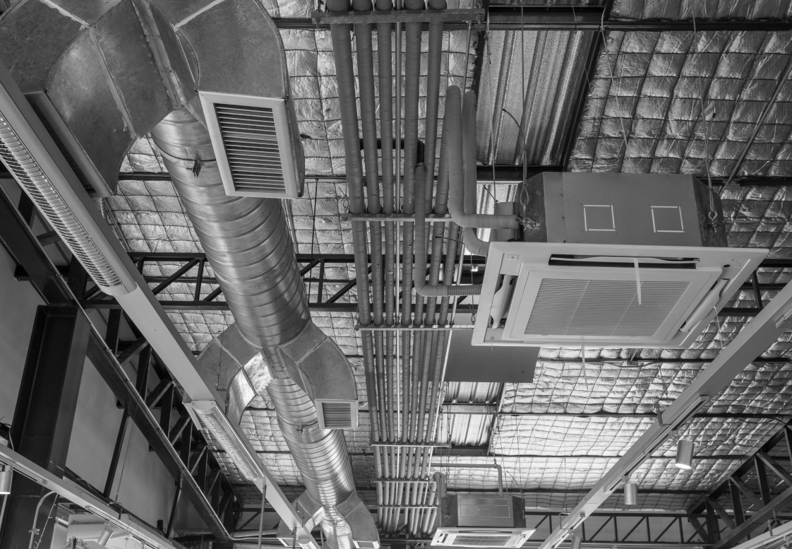 Turnkey installation of a 120 kW total capacity VRV system, including the installation of outdoor and indoor units, construction of the refrigerant piping network and condensate drainage system, as well as electrical connections and implementation of the control system.